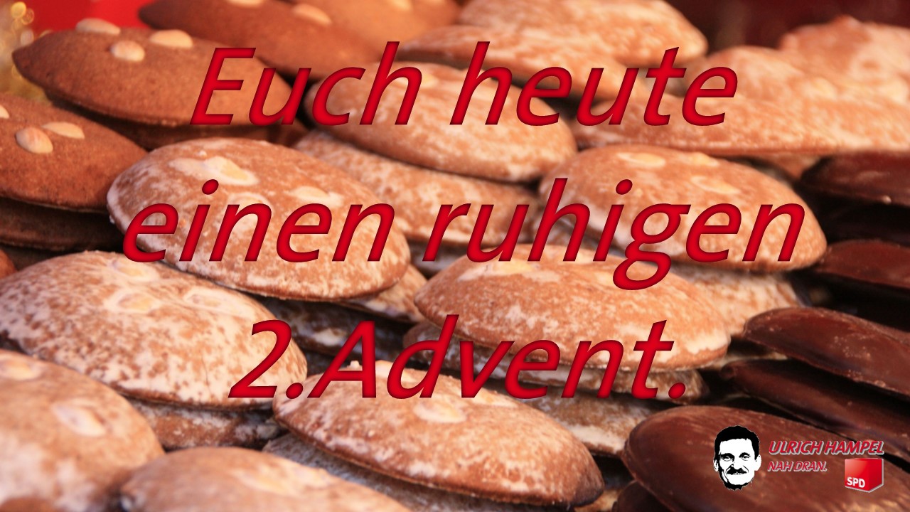 Ich wünsche Ihnen heute einen frohen vierten Advent. Genießen diesen Tag, schalten Sie einen Gang zurück und freuen Sie sich auf die kommenden Festtage.