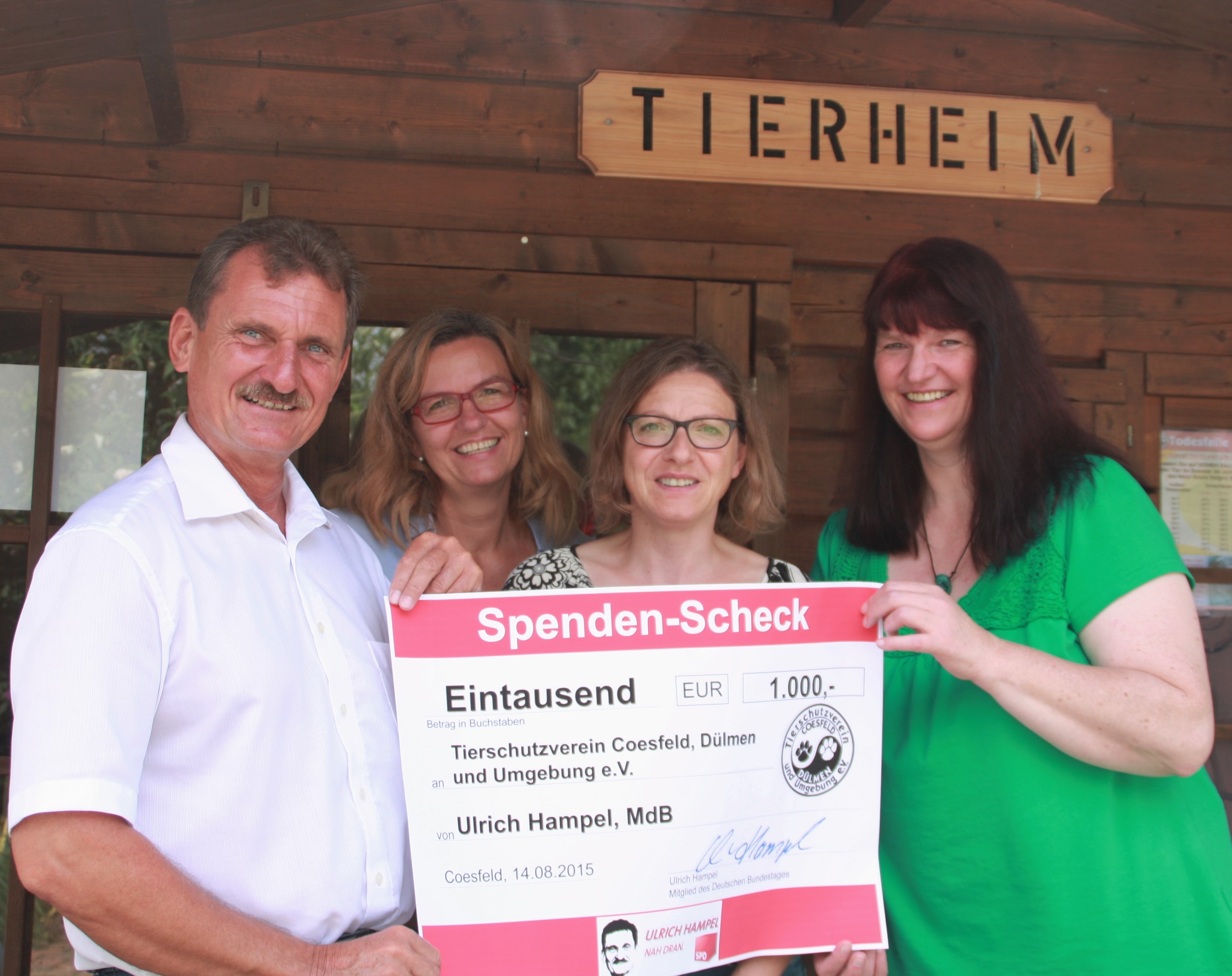 SPD-Bundestagsabgeordneter Ulrich Hampel dankt den Tierschutzverein Coesfeld, Dülmen und Umgebung e.V.